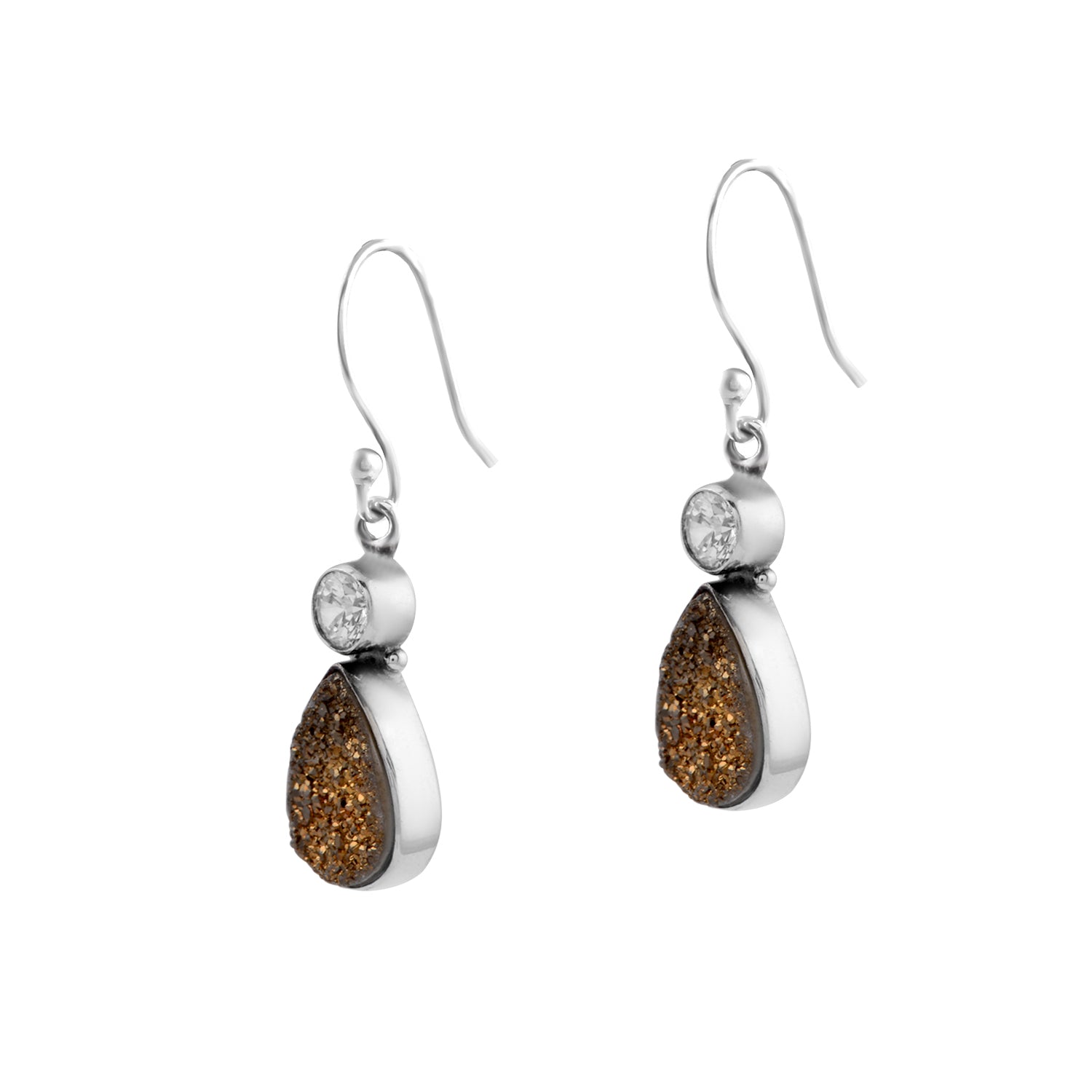 A pair of smart and casual earrings with a quartz and druzy. It looks very pretty, and adds the sophistication to a charming persona