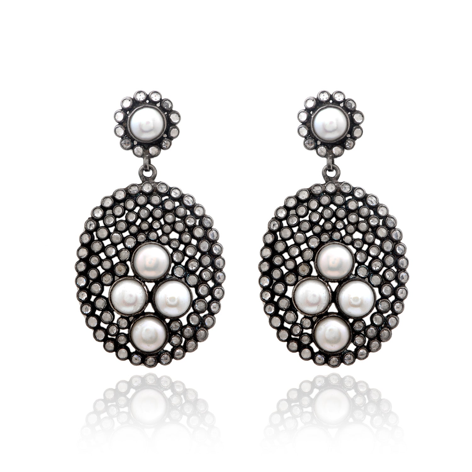 Polished to a brilliant shine with black rhodium plating, , these glamorous earrings are a perfect addition to any jewelry collection. Give yourself a glamorous look with these trendsetting earrings.