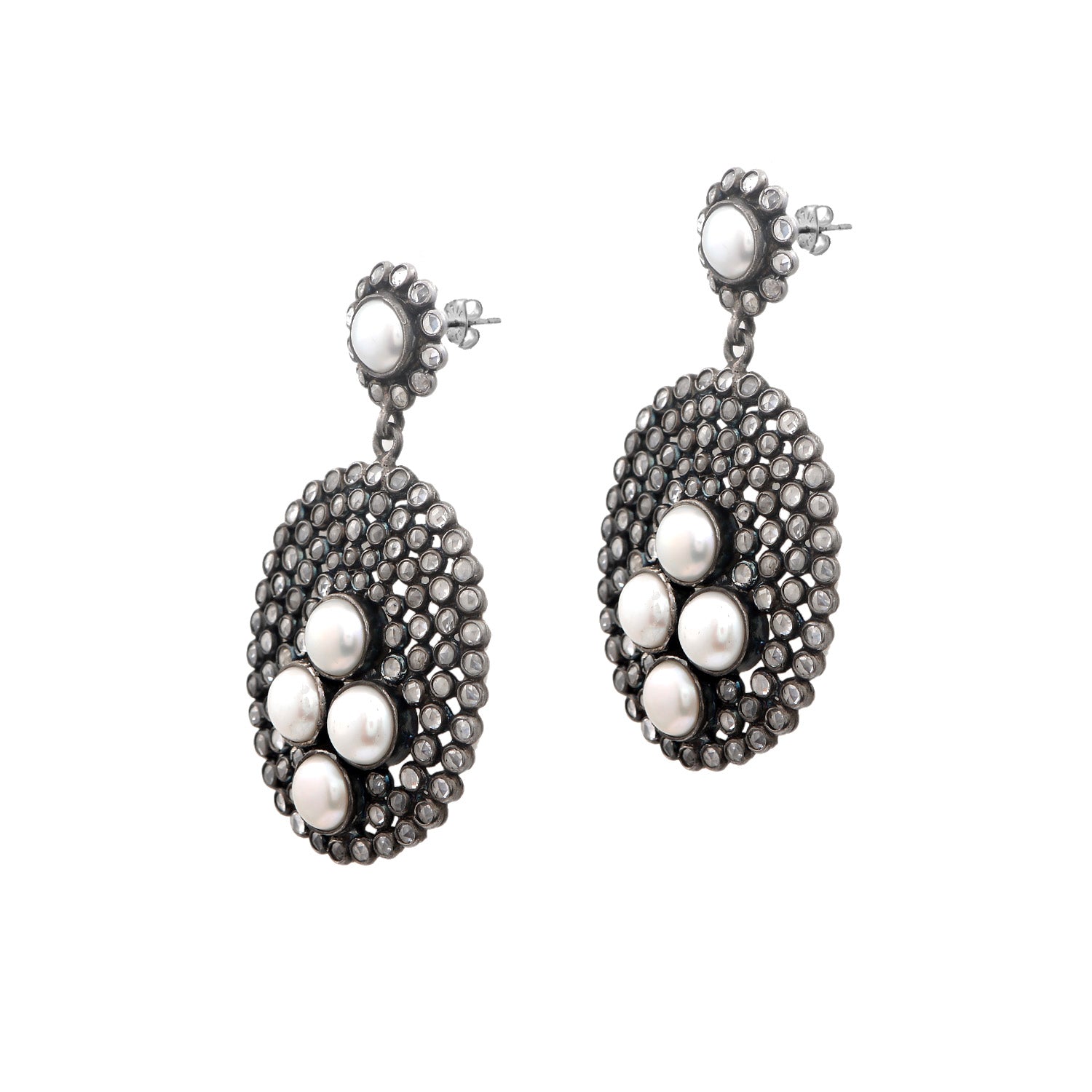 These bold and beautiful Freshwater Cultured Pearl and White Topaz Drop Earrrings are crafted in sterling silver.