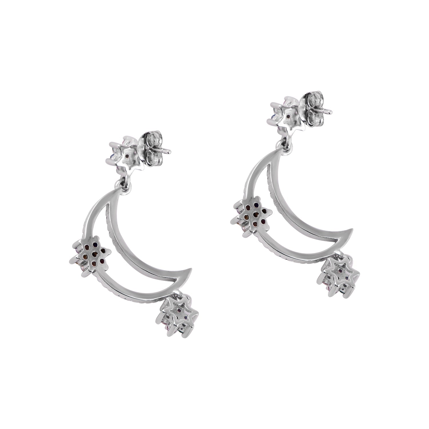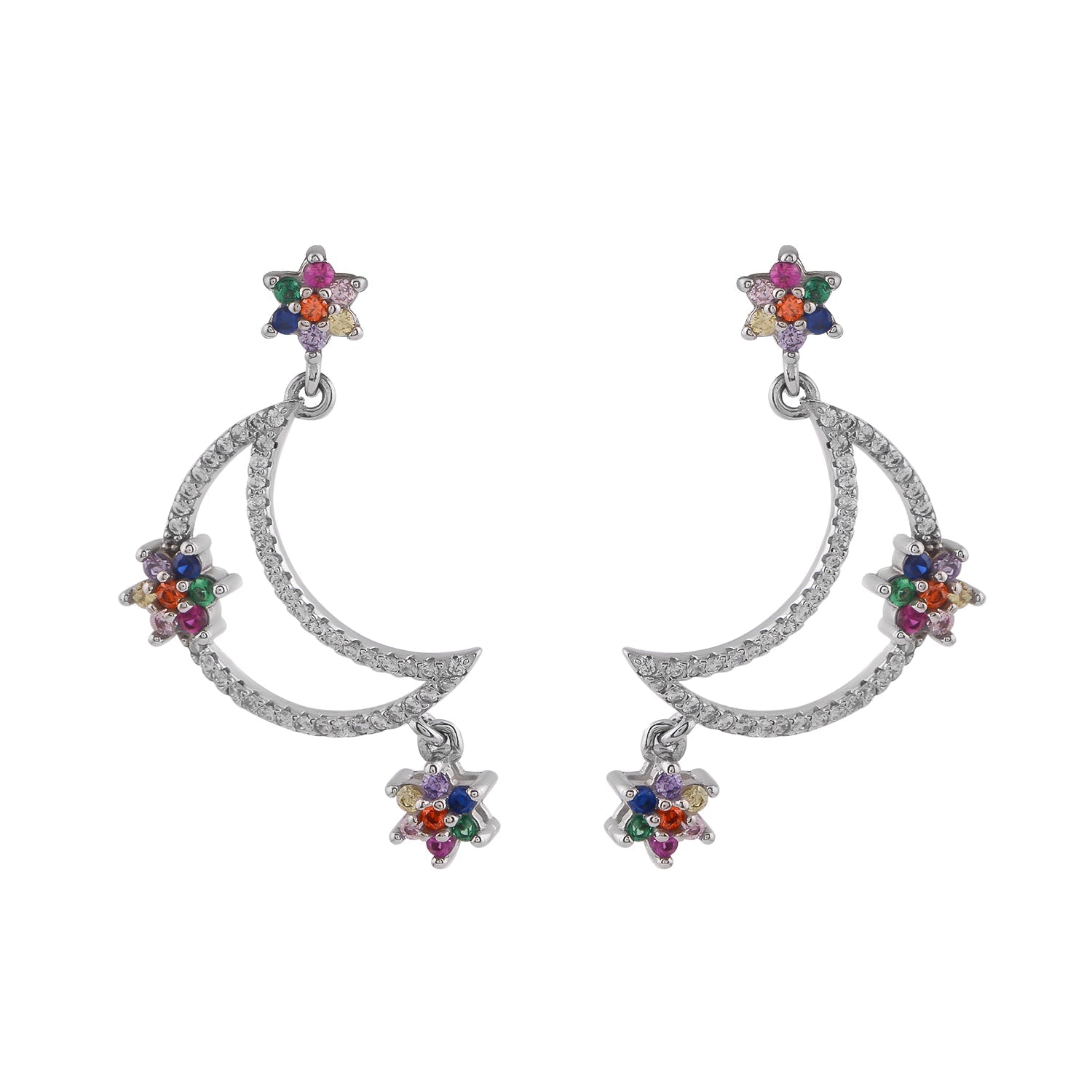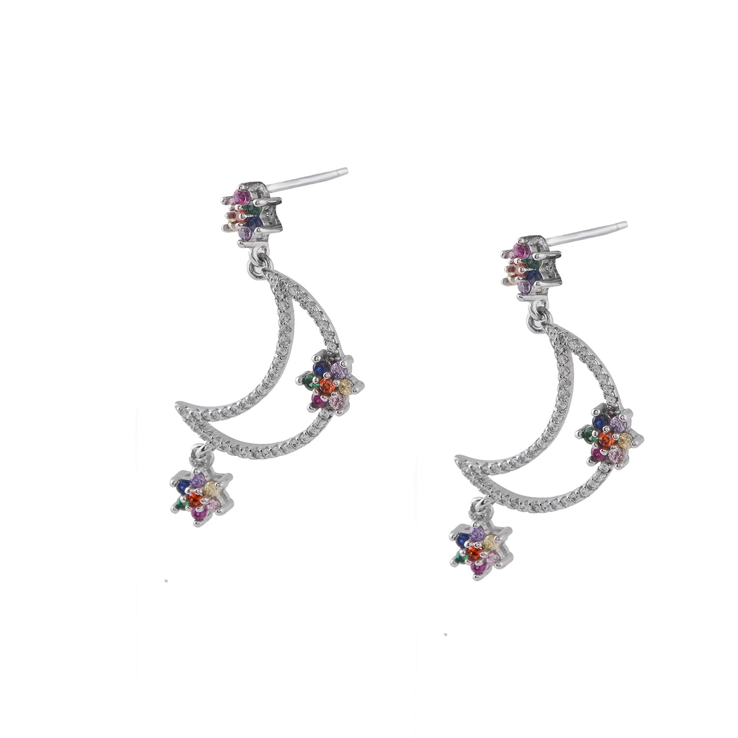 These prettiest earrings are being hand-made with a combination of colors and shining CZ stones. The hanging flowers in the crescent moon look very cute and add a sophisticated charm to the person adorning it