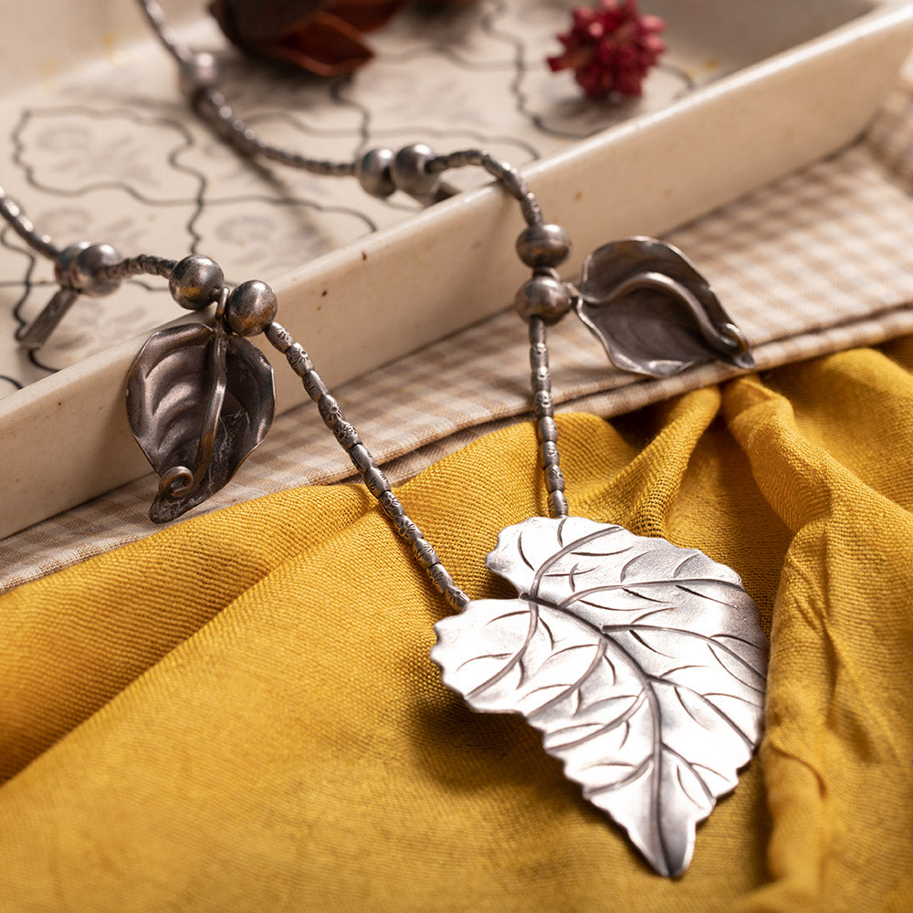 Inspired by nature, the Vanya necklace is made of engraved leaves making this necklace stylish and lightweight This necklace allows an easy and effortless styling and makes a pretty addition to your traditional outfits, and adds an earthy touch to your modern look.
