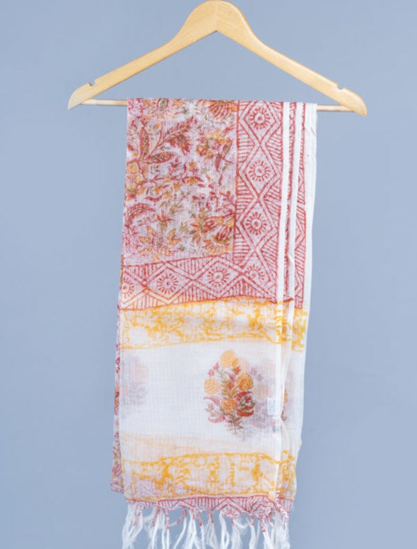 It is a beautiful hand block printed dupatta which adds grace and makes it look more opulent and classy.