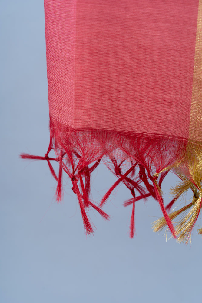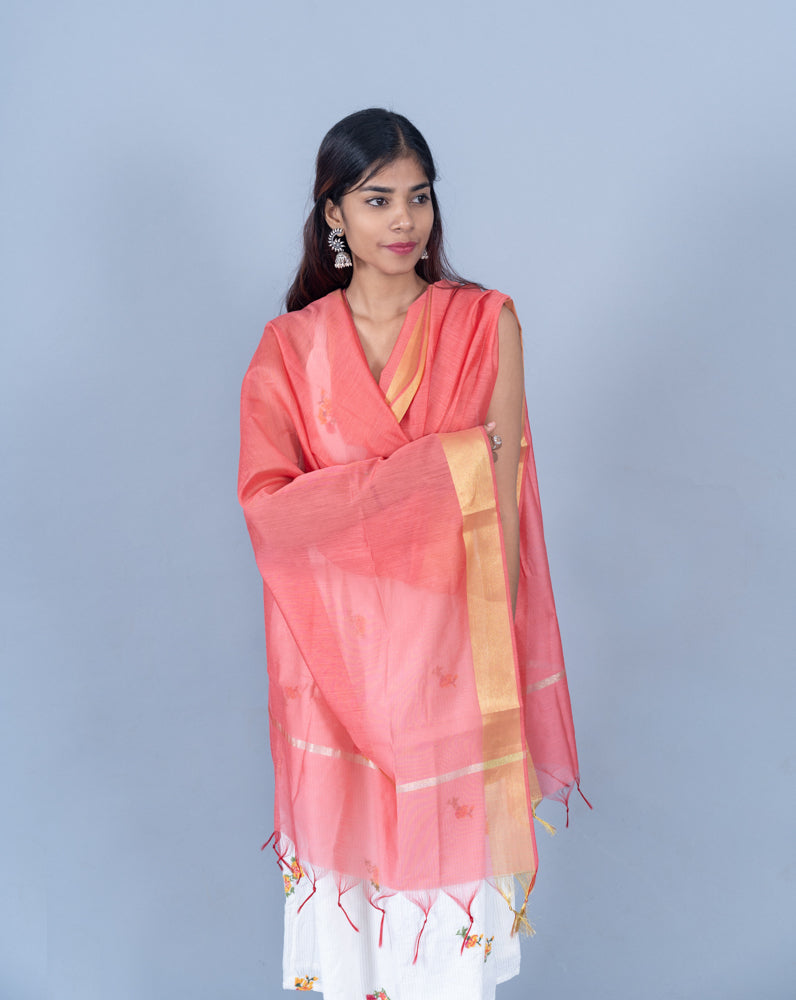 OMVAI Golden Border Chanderi Silk Dupatta - Coral