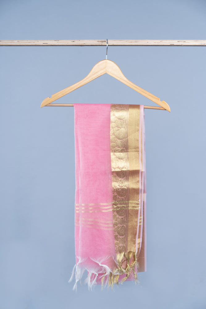 OMVAI Paisley Border Chanderi Silk Dupatta - Pretty Pink