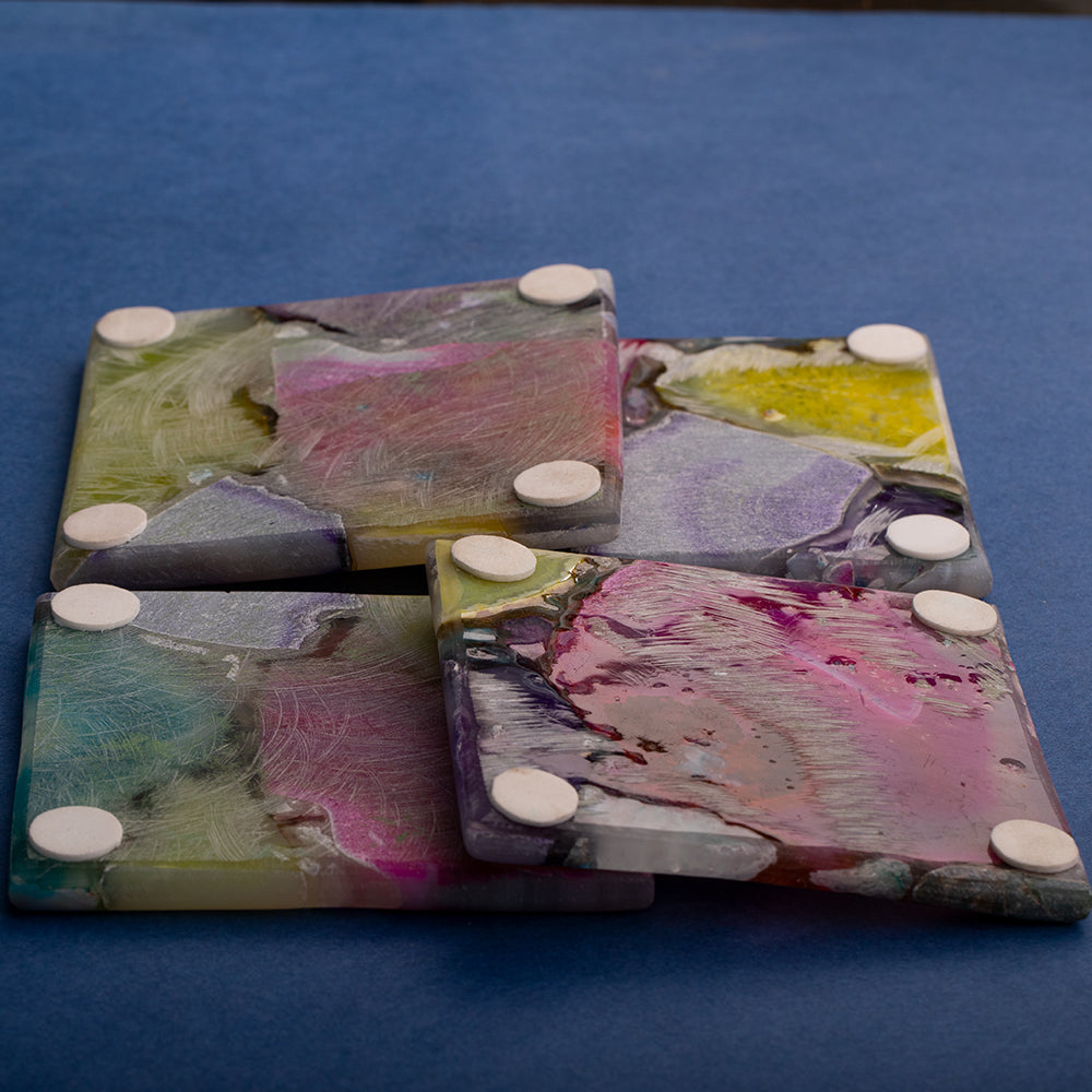 - A beautiful set of coasters made of natural Agate molded with resin