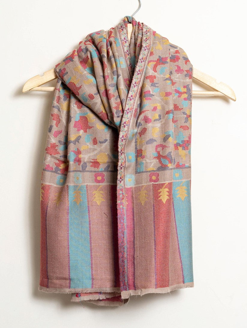 KASHMIR JAAL Beige Red Alluring Kani Woven Shawl - Unisex