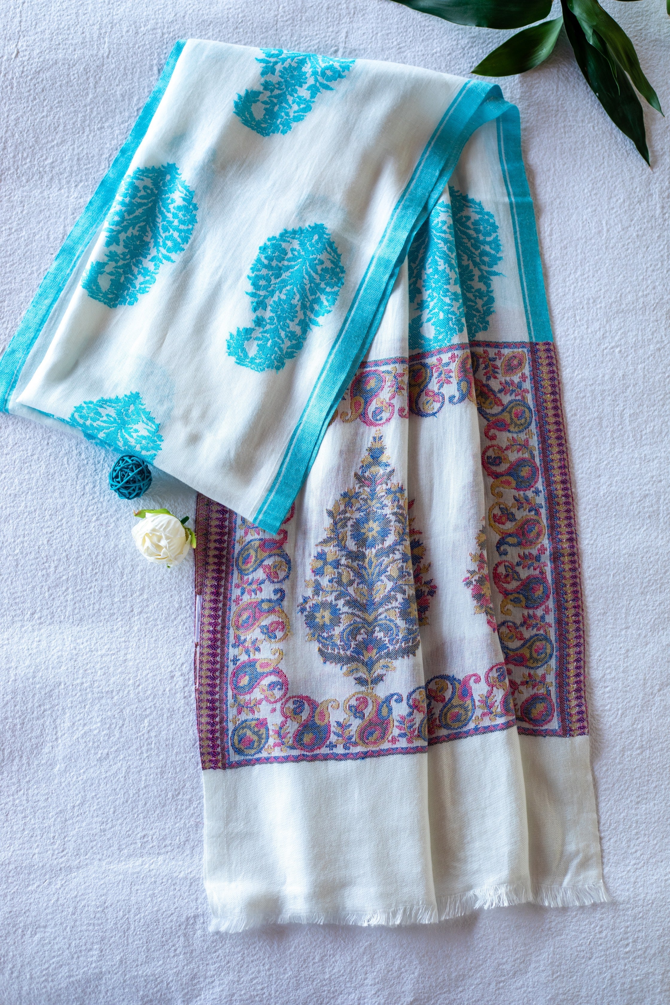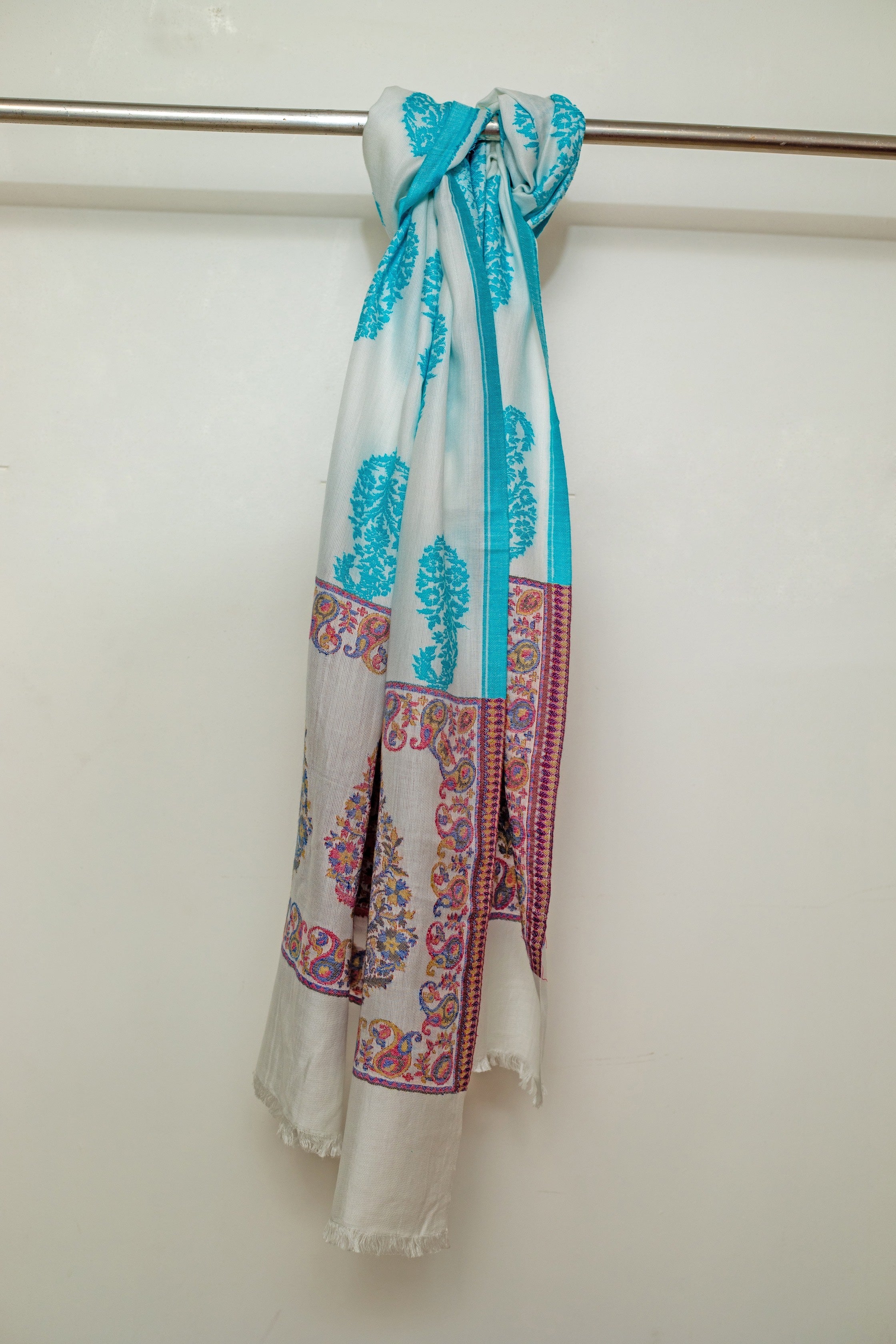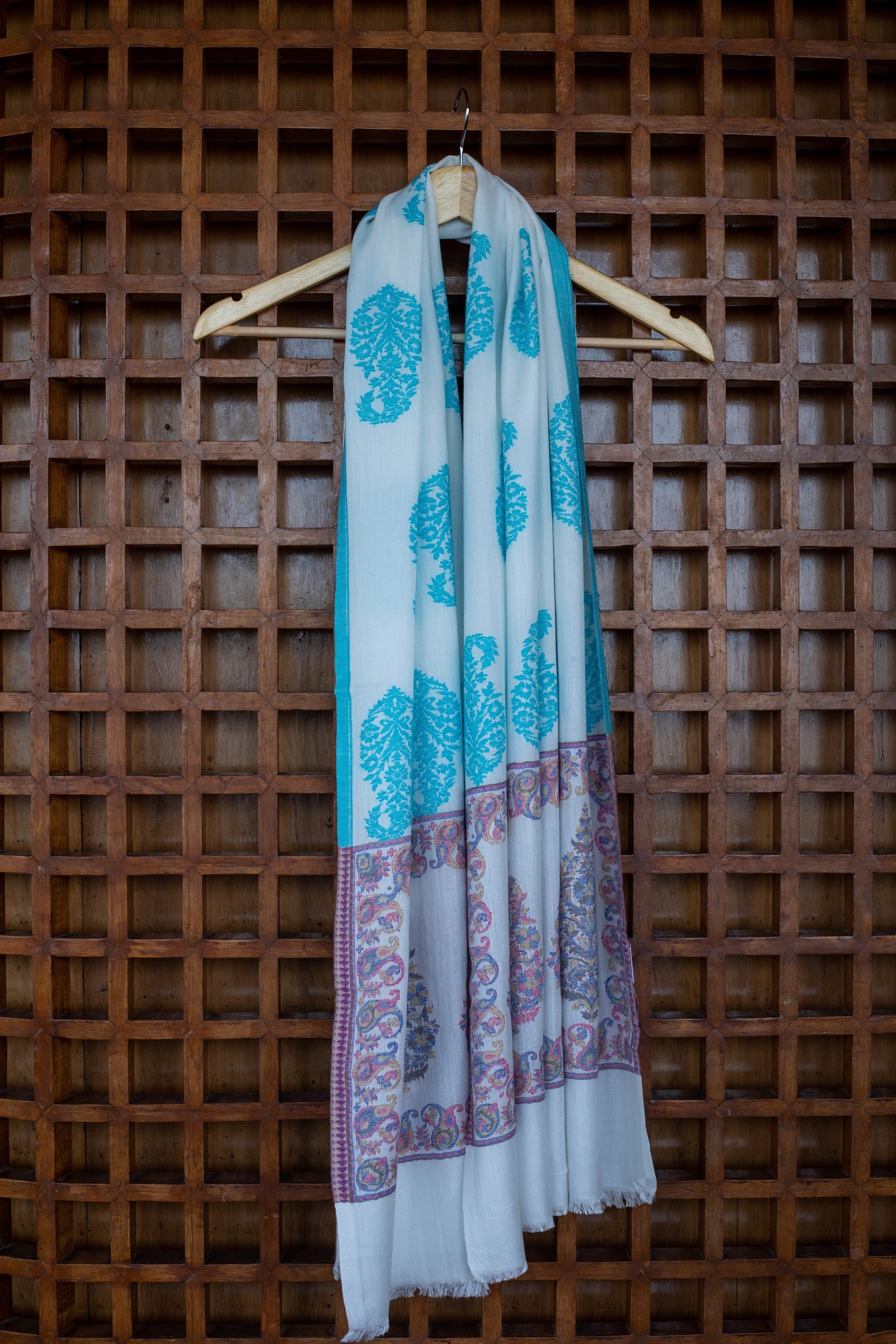 OMVAI Ornamental Buta Modal Stole White Sky