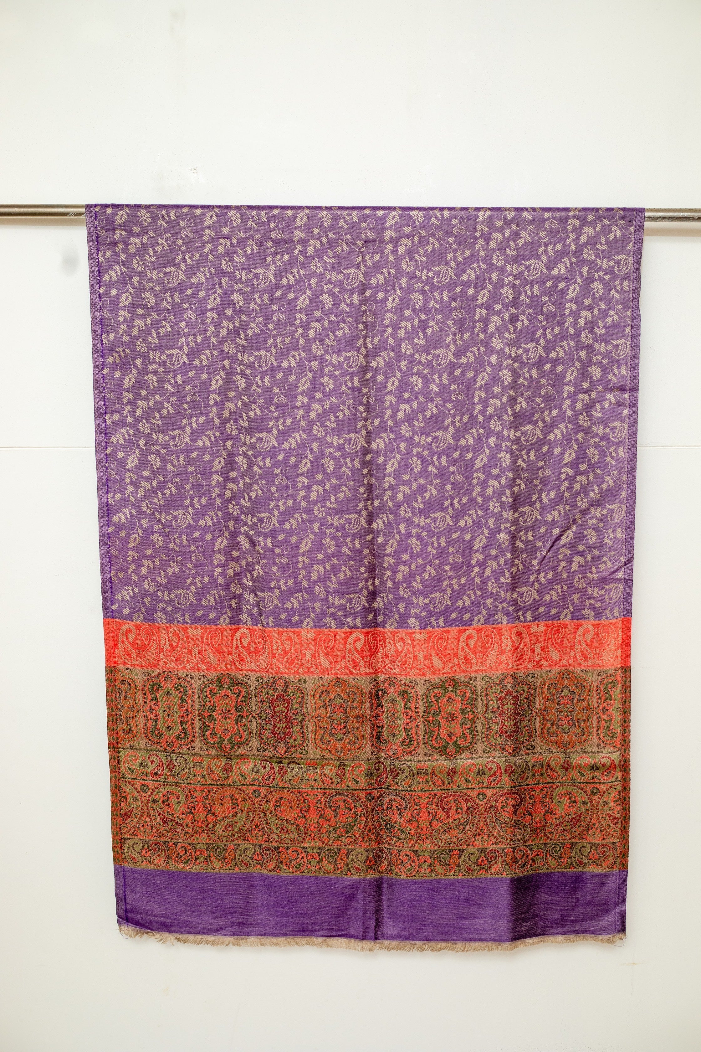 OMVAI Royal Jacquard with Intricate Kashmiri Border Modal Stole Lavender