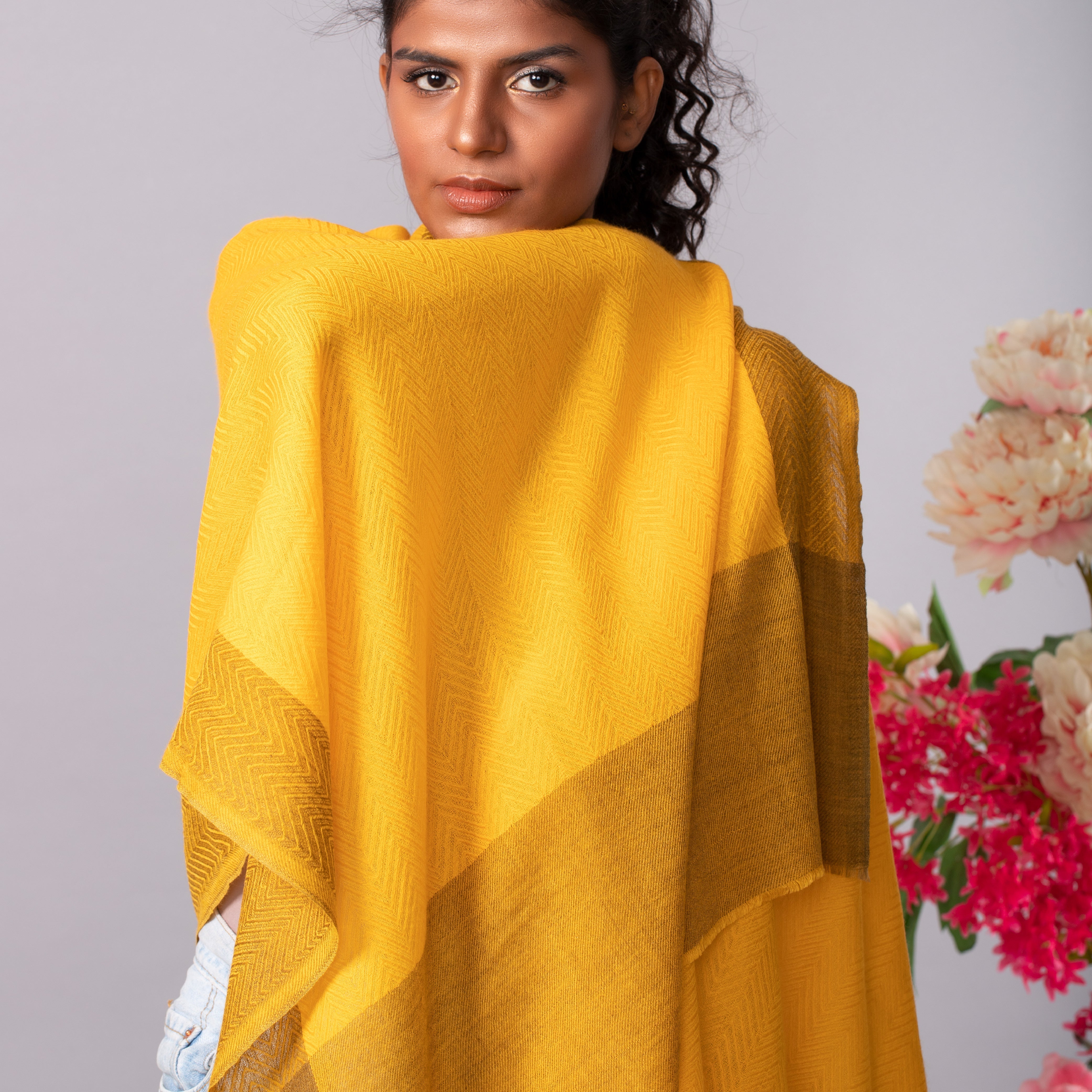 OMVAI presents to you the premium quality of super soft and luxurious zig zag patterned pashminas. This range of wraps has a modern touch to the conventional pashminas to make them look alluring and more magnificent.