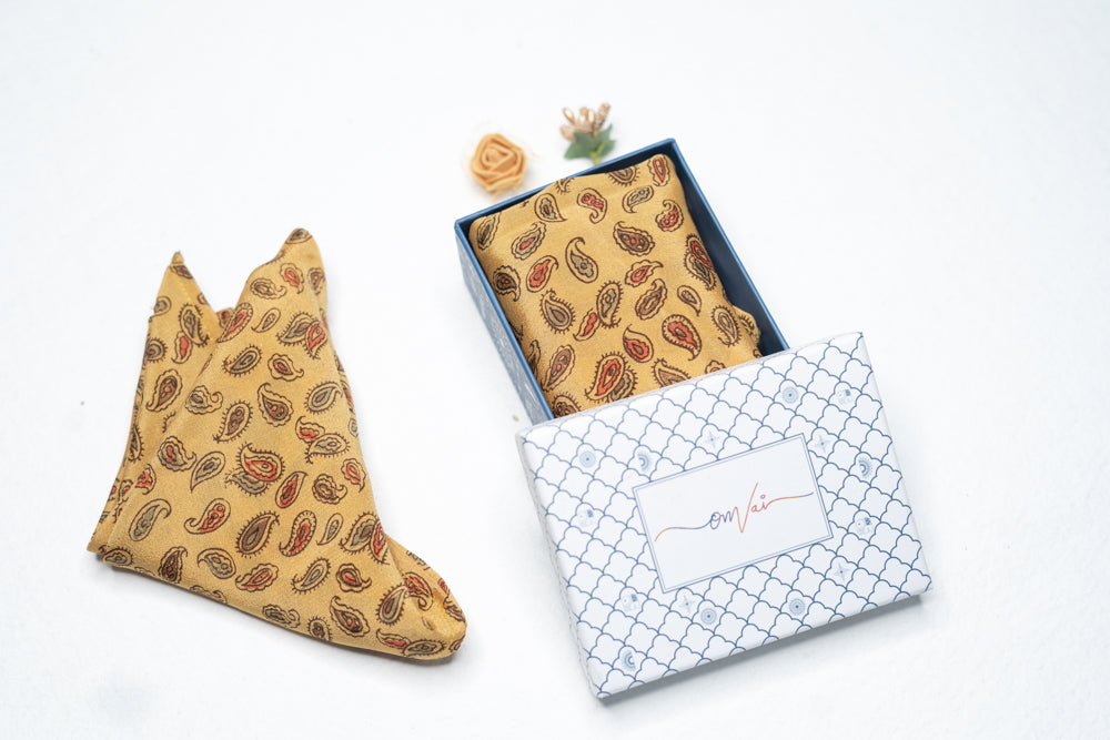 OMVAI Silk Pocket Square - Mini Paisley Mustard