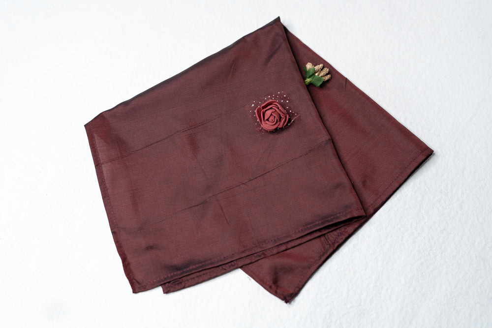 OMVAI Solid Silk Pocket Square Rich Burgundy