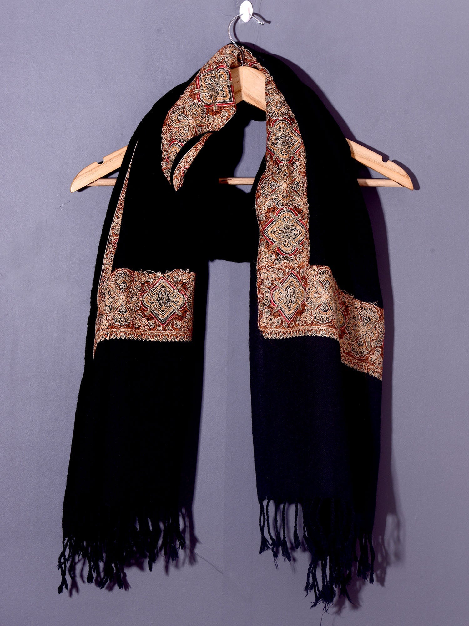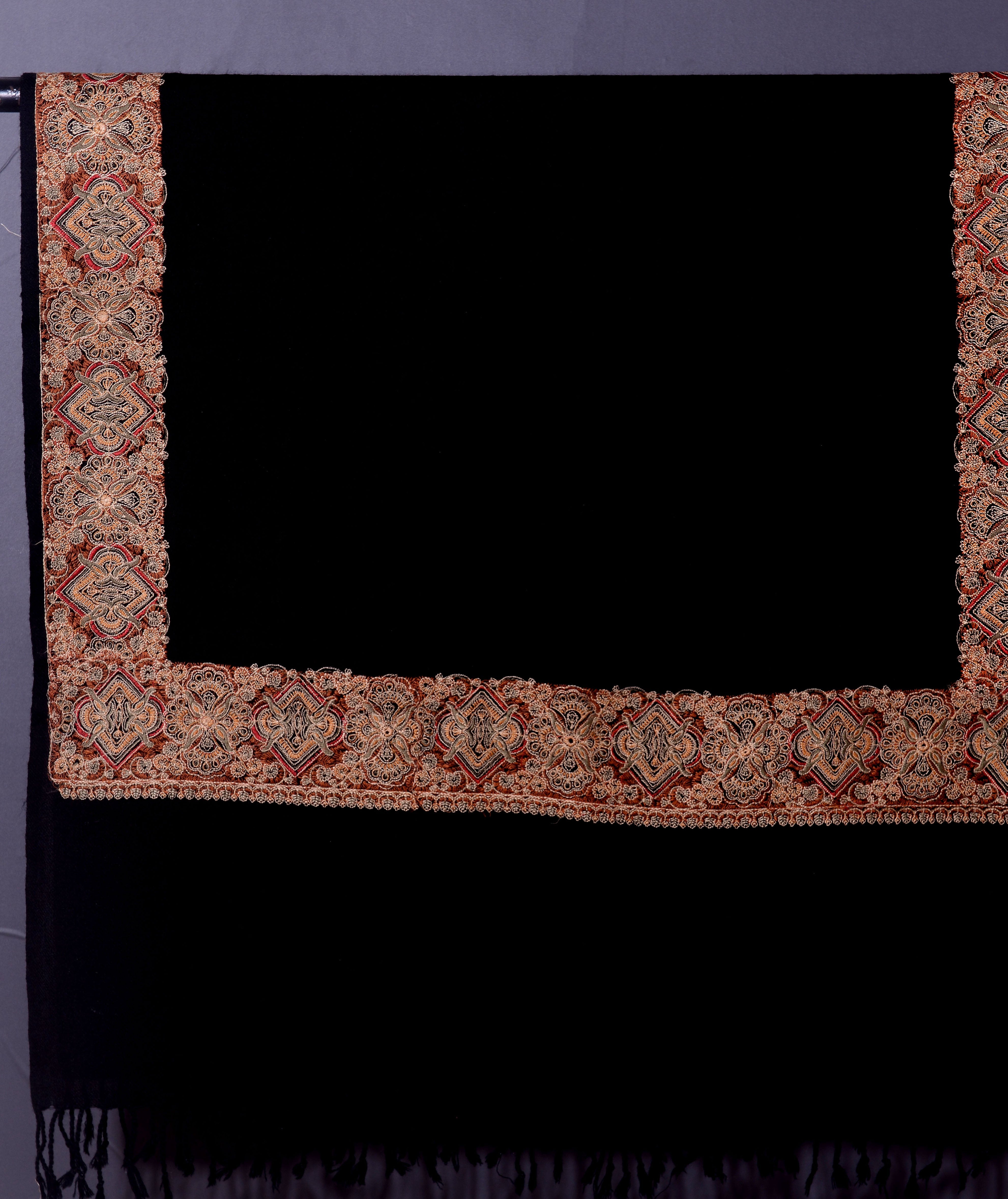 AMER Elegant Midnight Black Embroidered Shawl - Unisex