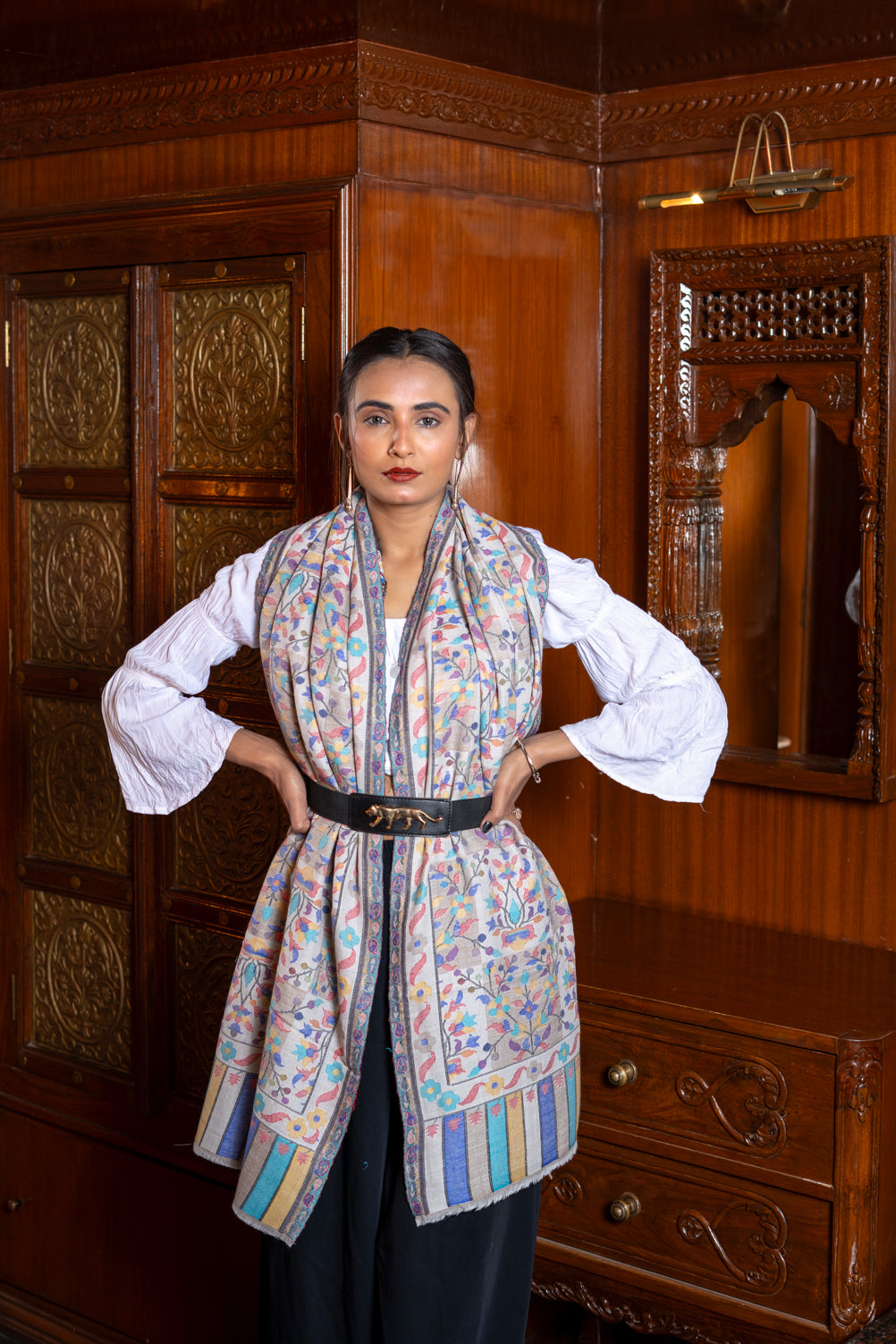 This Kani look though is warm and it embraces your silhouette with elegance and poise. Easy to drape and wrap around for the cozy warm feel. Experience the Luxury of drapes with OMVAI