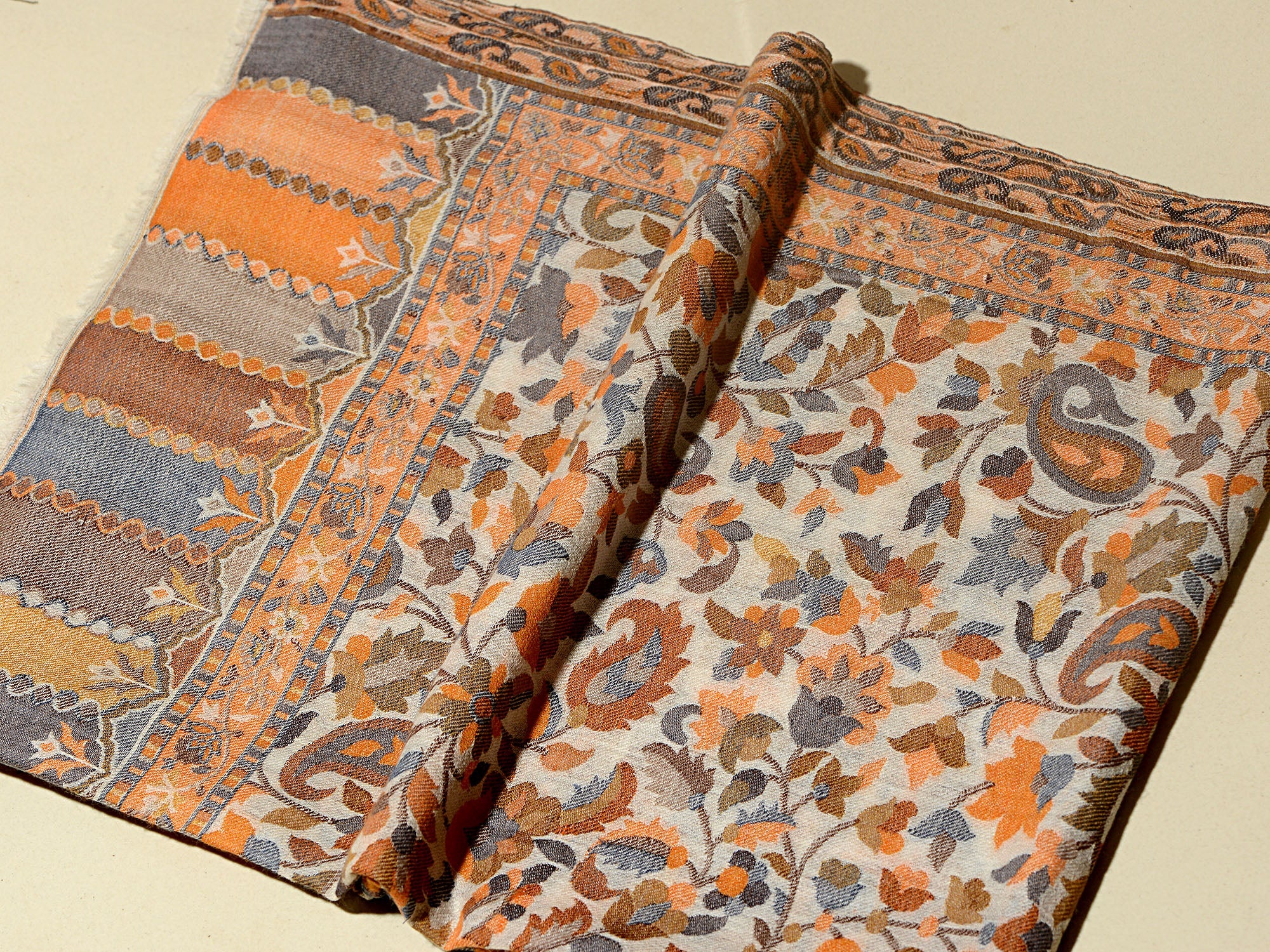 FALAK Alluring Natural Ochre Kani Woven Shawl - Unisex