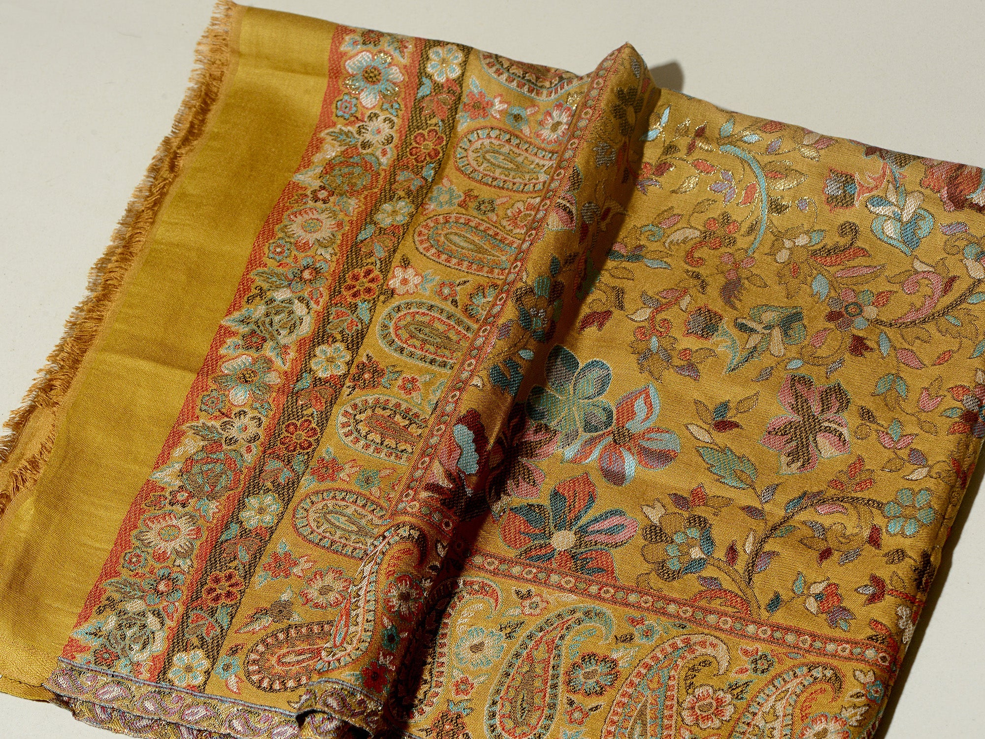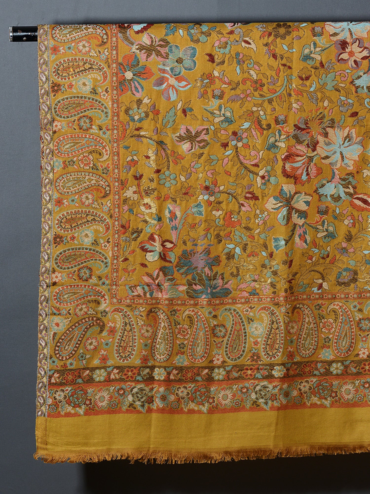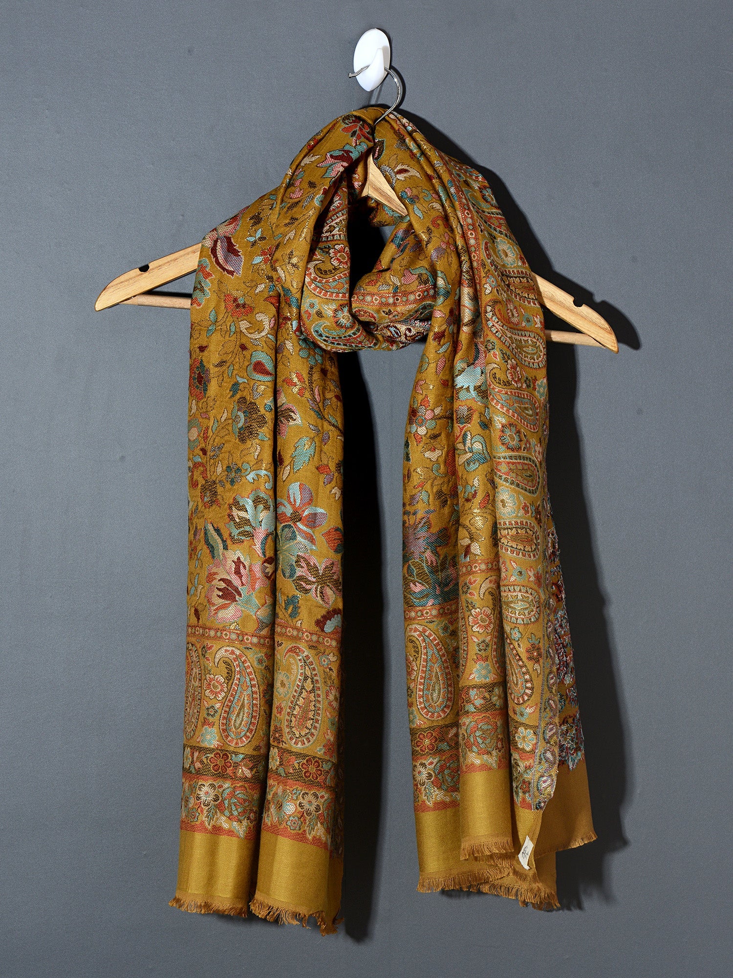 MAHREEN Alluring Ochre Yellow Kani Woven Shawl with ZARI - Unisex