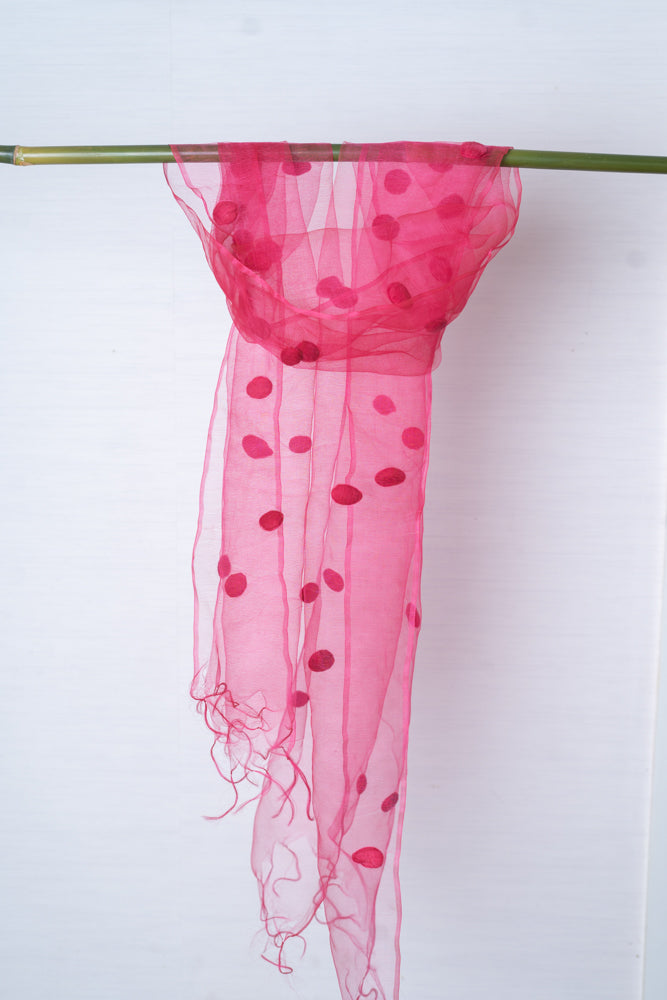 OMVAI Woven Spindles Silk Organza Stole - Hot Pink