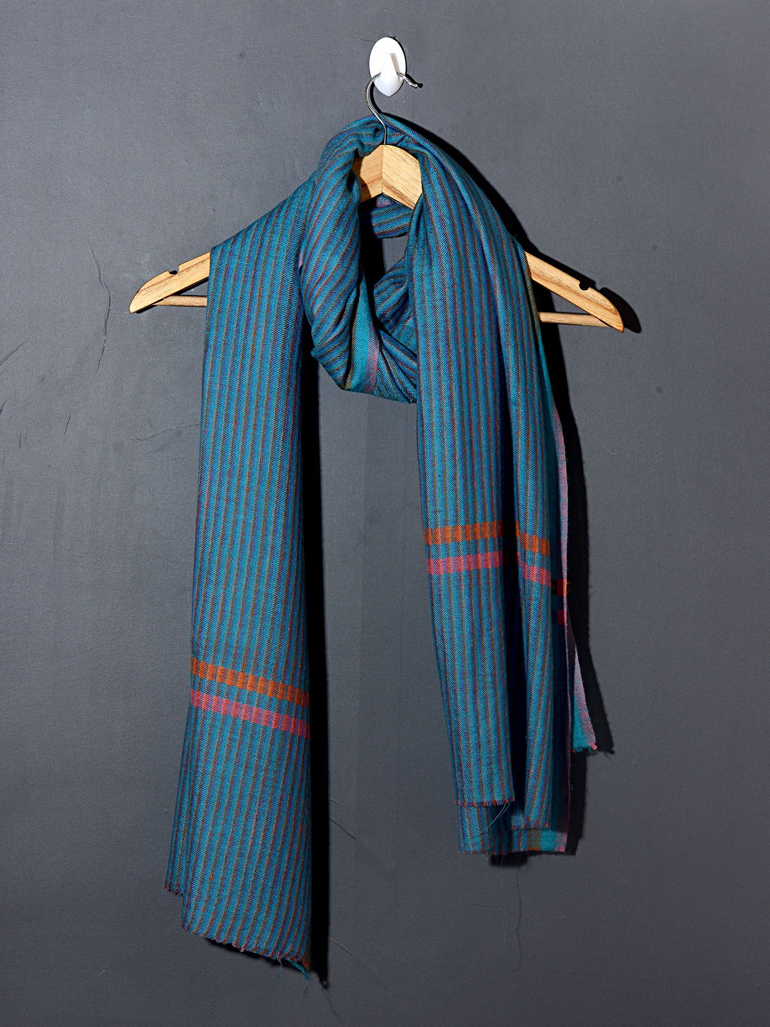 Aqua Stripes Patterned Pashmina Stole - Blue