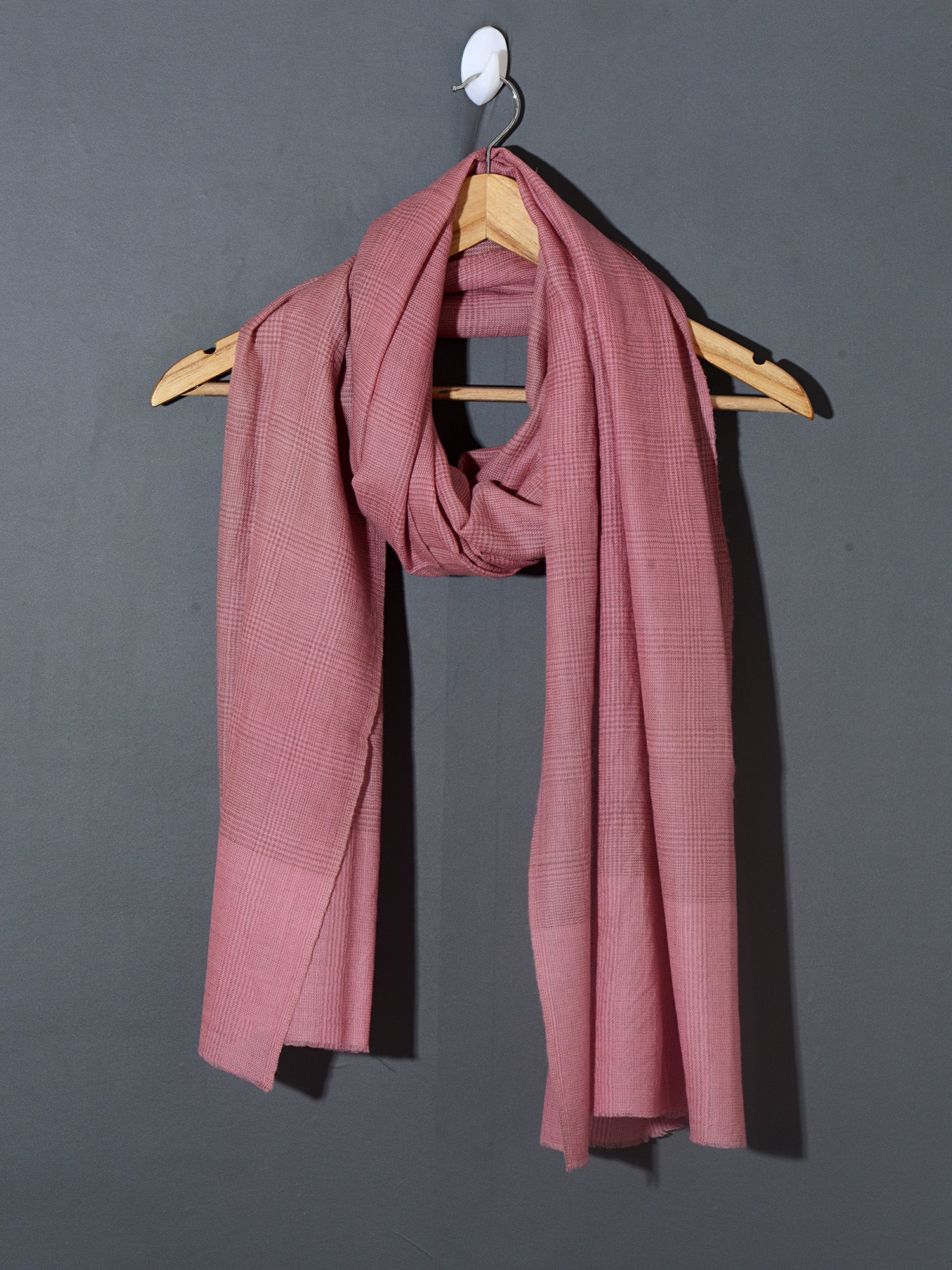 Kashmiri Checks Patterned Pashmina Stole - Pretty in Pink