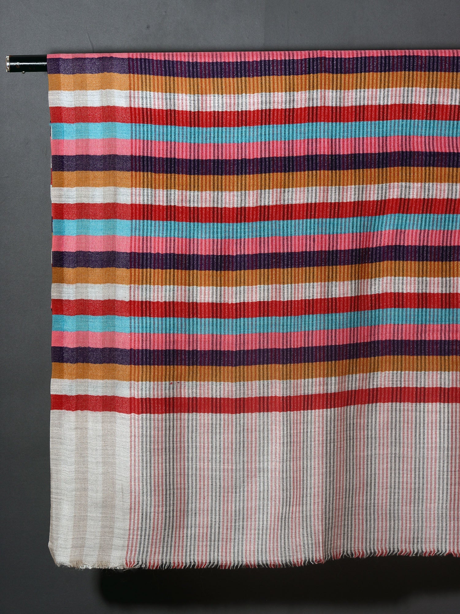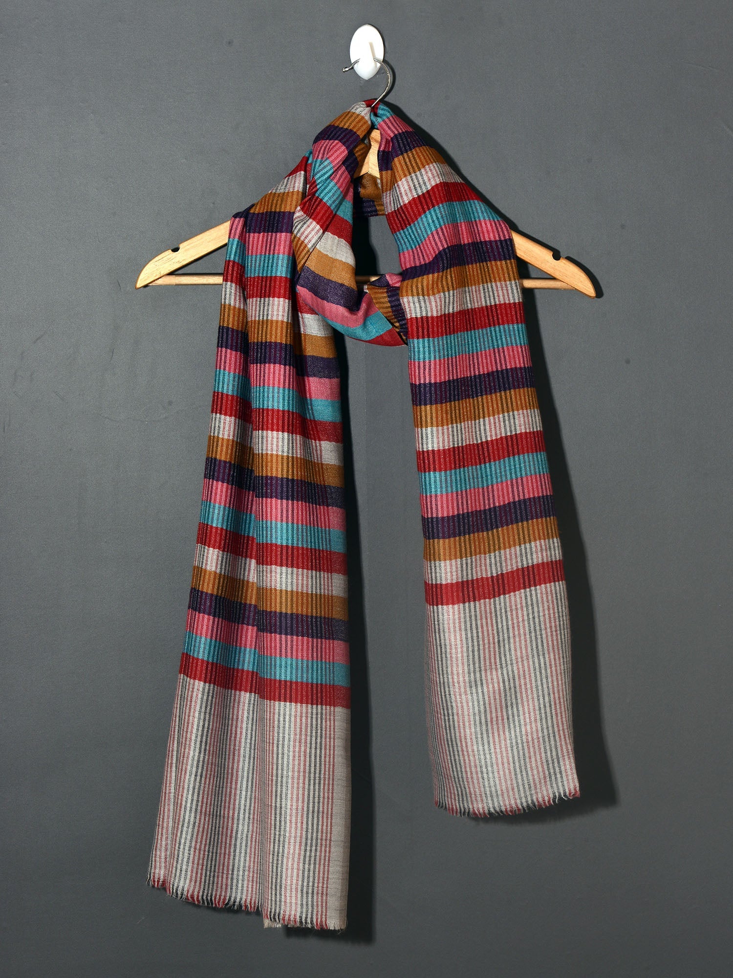Multi Stripes Kashmiri Patterned Pashmina Stole - Multi Bright Stripes