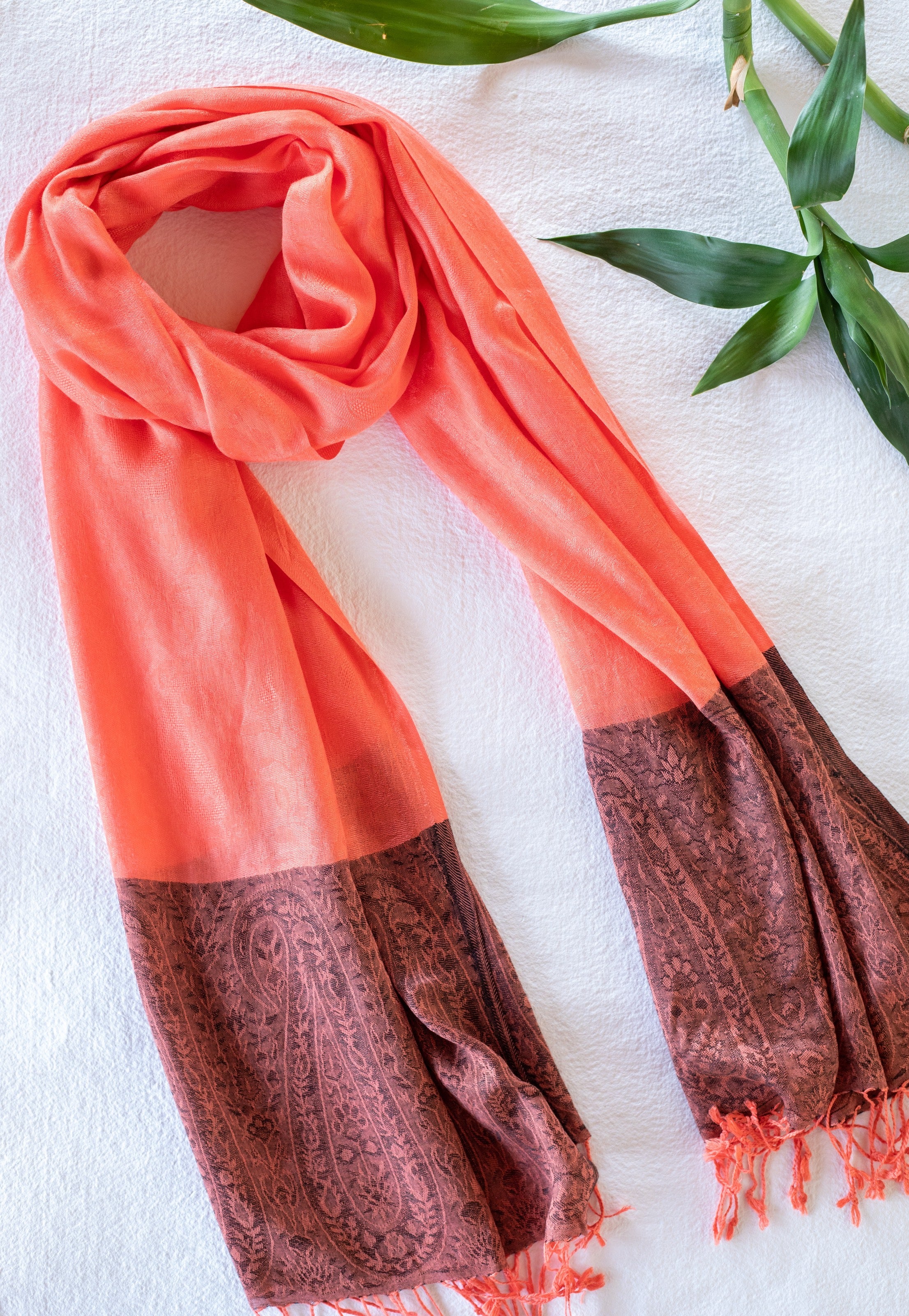 OMVAI Stunning Jacquard with Border Modal Stole Pastel Orange