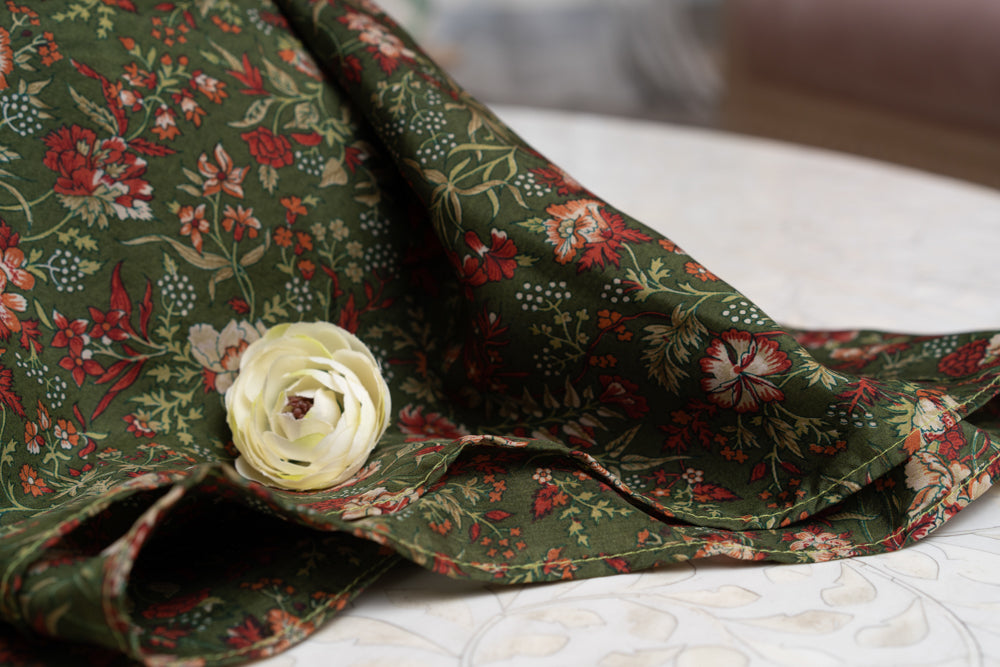 OMVAI Victorian Flower Print Silk Stole - Emerald Green