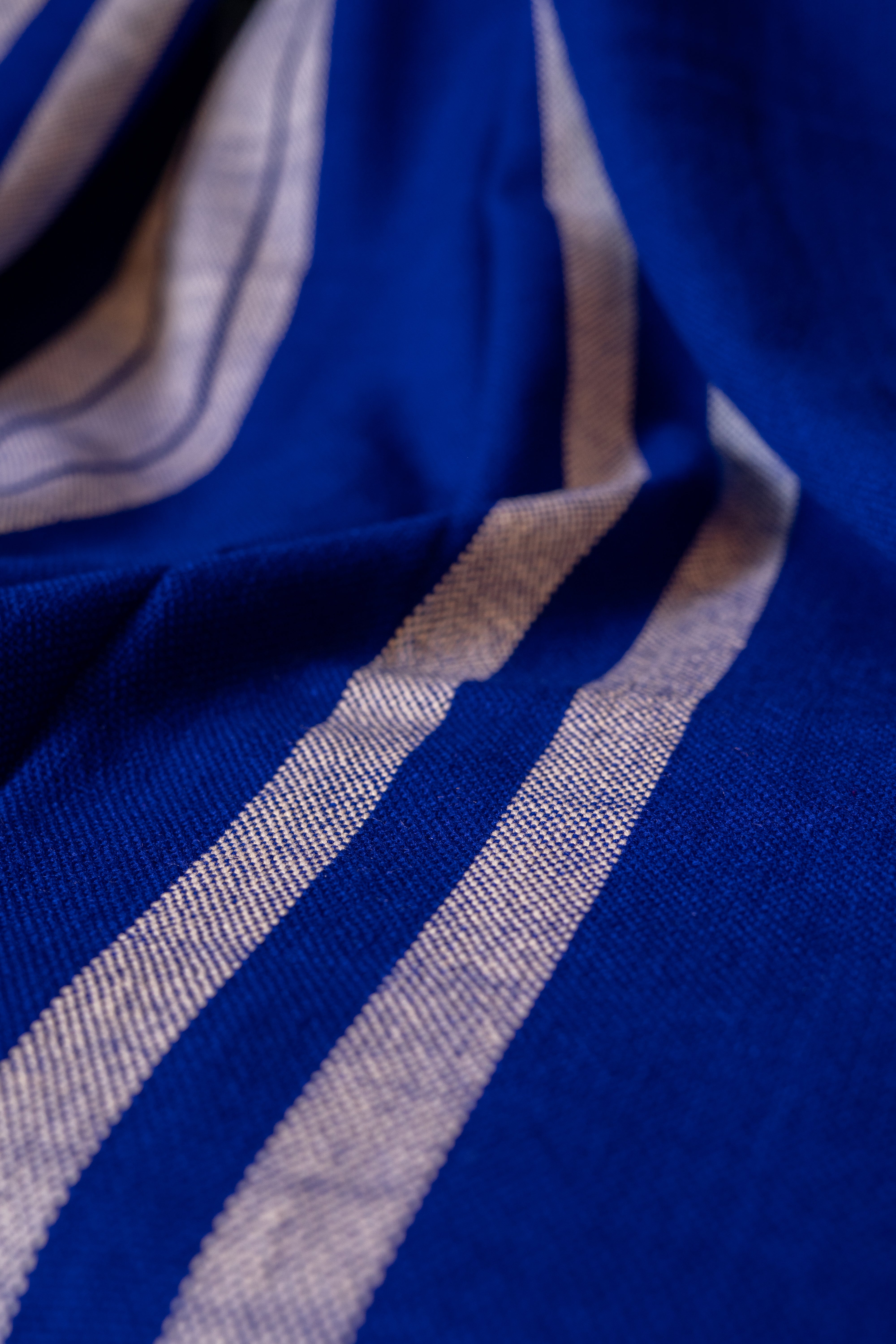 OMVAI Artisanal Patterned Cashmilon Woven Throw Blanket / Comforter - Royal Blue with white green weave border