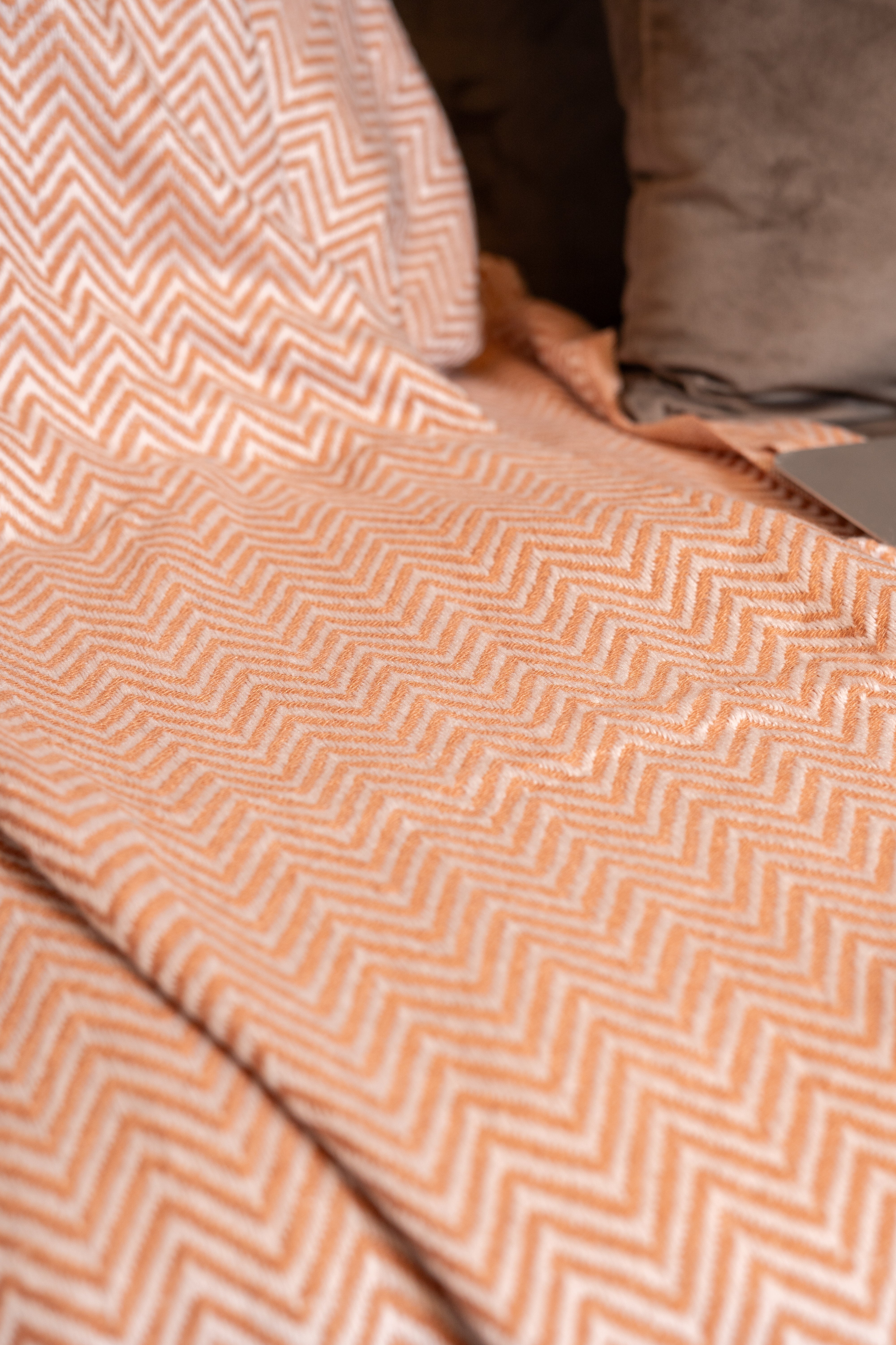 OMVAI Zig Zag Patterned Woven Throw Blanket / Comforter Caramel