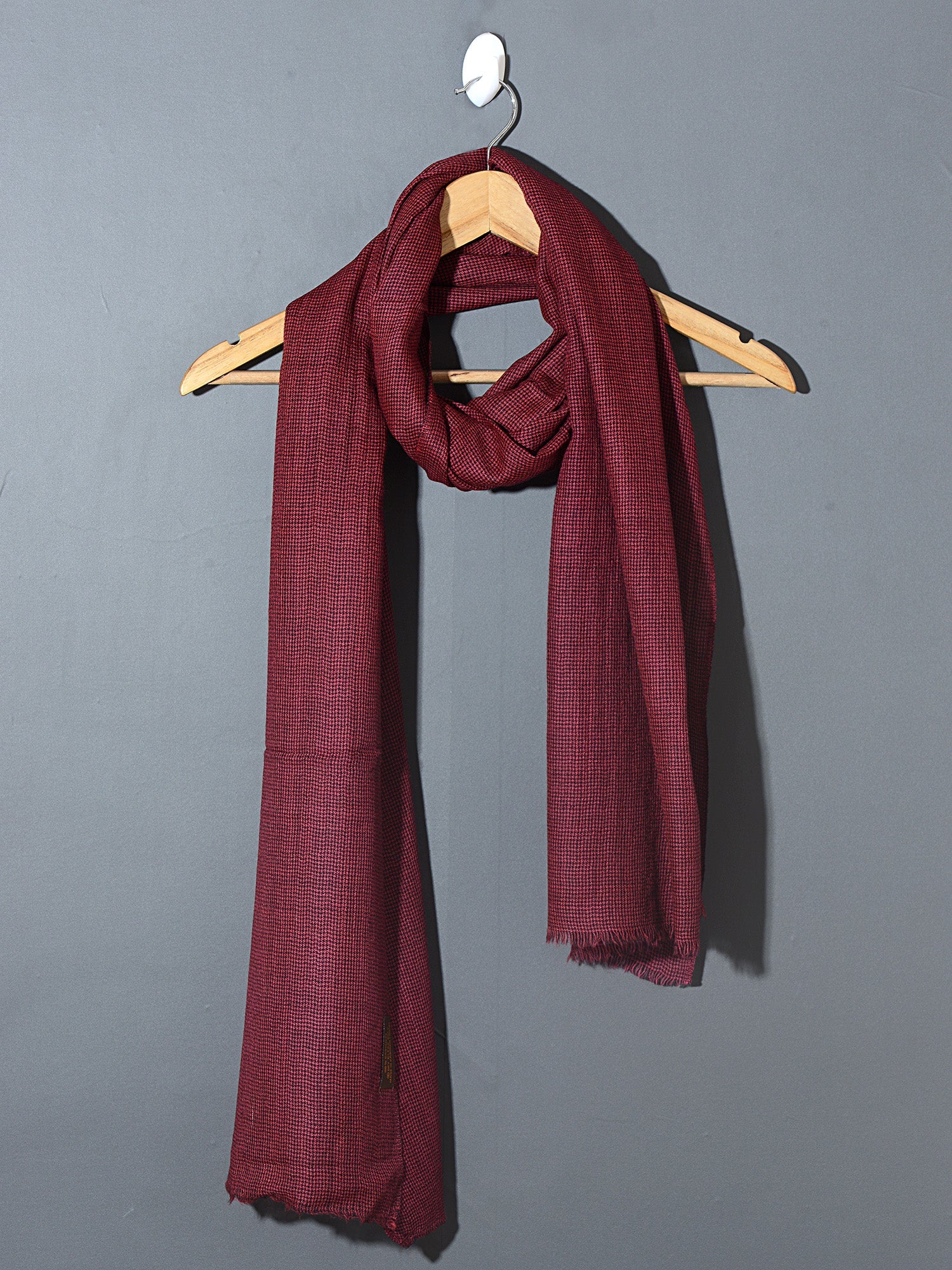 Kashmiri Royal Checks Patterned Pashmina Stole - Crimson