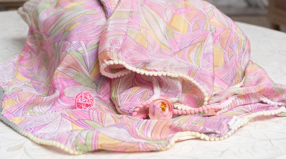 OMVAI Abstract Geometry Crepe Stole - Pastel Pinks