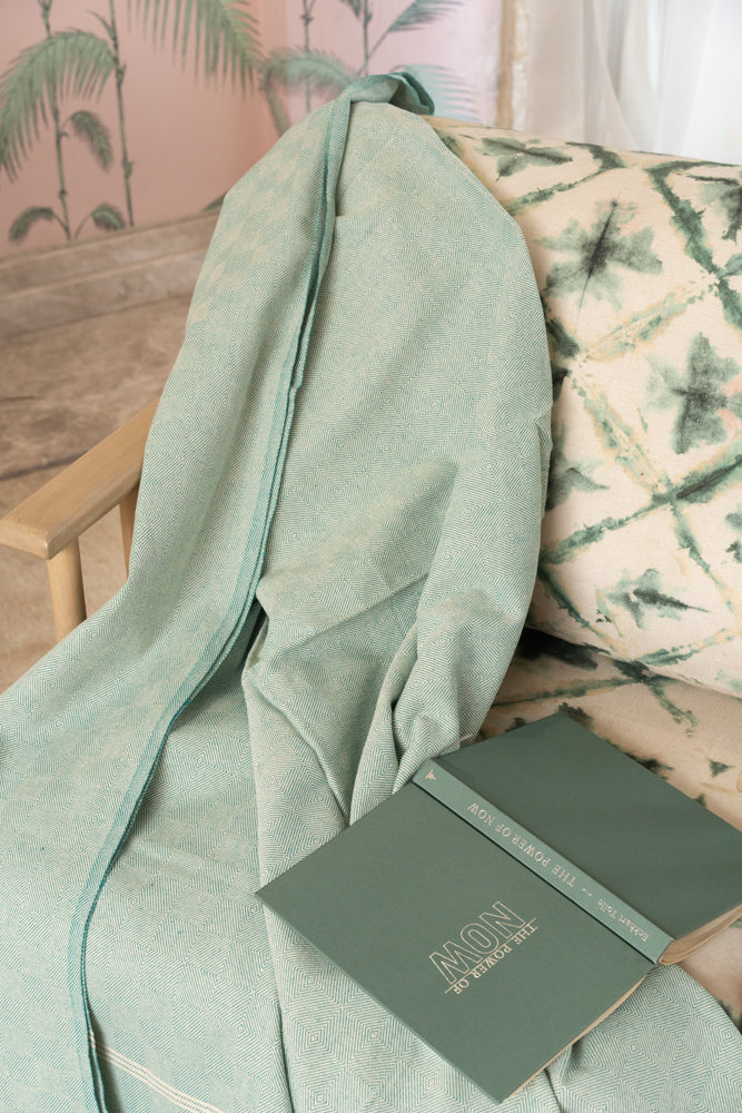 OMVAI Diamond Weave with Border Cotton Woven Throw Blanket / Comforter - Green